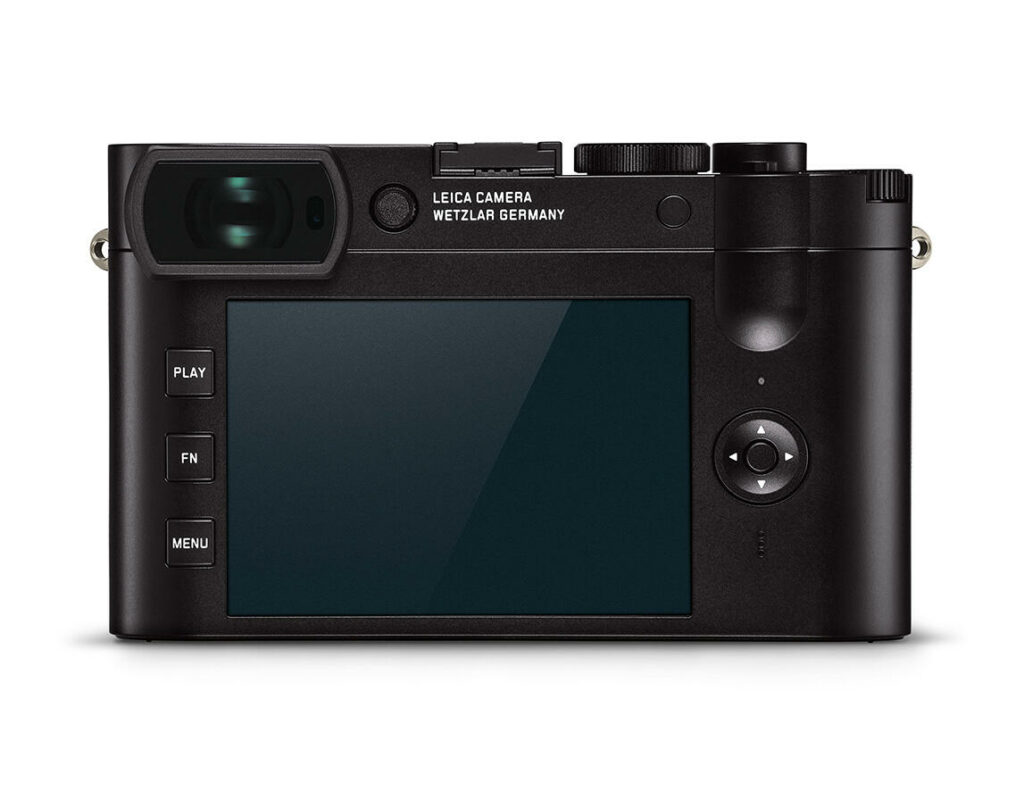 The design has been revised and corrected in relation to the Leica Q (type 116): loss of battery cover for the battery system (type SL2); loss of video recording key and the start/release button lost its functions S (burst release) and C (burst release). Also changes to the back of the camera where it is simplified with only 3 buttons on the left side of the screen ‘PLAY’, ‘FN’ and ‘MENU’.