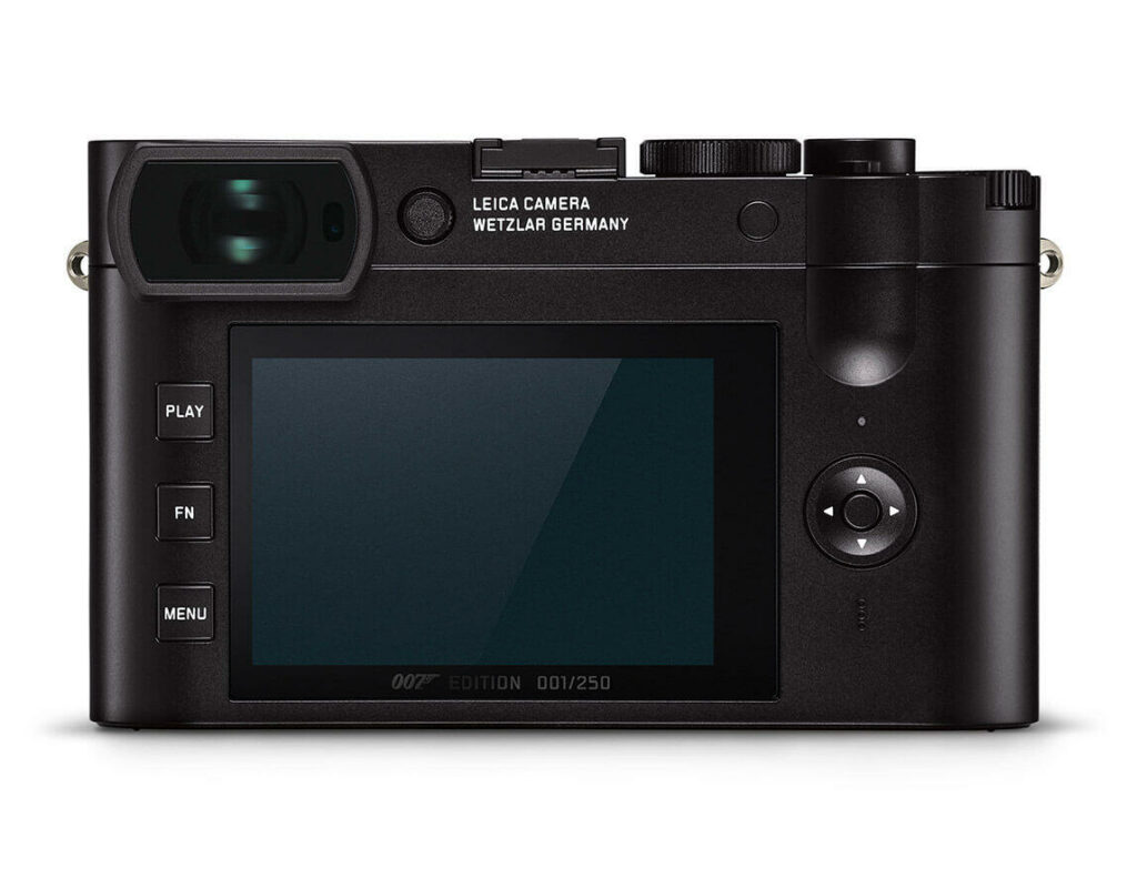 En. This time the Leica Q2 is dressed for a new (rare) edition of 250 copies: the Leica Q2 « 007 Edition » to celebrate the release of the 25th adventure of James Bond (Dying Can Wait). As Leica says on its website: discreet elegance – like James Bond – marked by the minimalist design characteristic of Leica. Ocean green leatherette sheath. Globe-trotter briefcase with matching trim. Thumb rest. Ocean green leatherette handle. All technical features and performance are identical to the standard Leica Q2 camera.