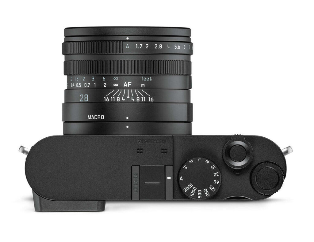 Es. En noviembre de 2022, Leica lanzó el Leica Q2 Monochrom. Se basa en las características técnicas del Leica Q2, pero con un sensor de 47 millones de píxeles en blanco y negro. No hay pastilla roja y las letras naranja reemplazadas por letras azul pálido/ gris en la lente.