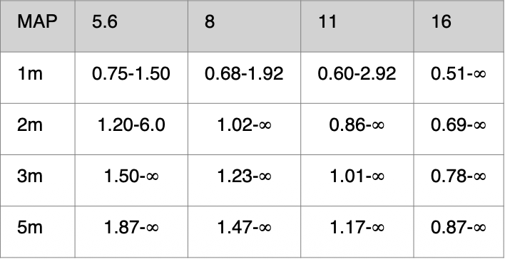 Voici un petit tableau de profondeurs de champ avec les distances de 1, 2, 3 et 5 m.